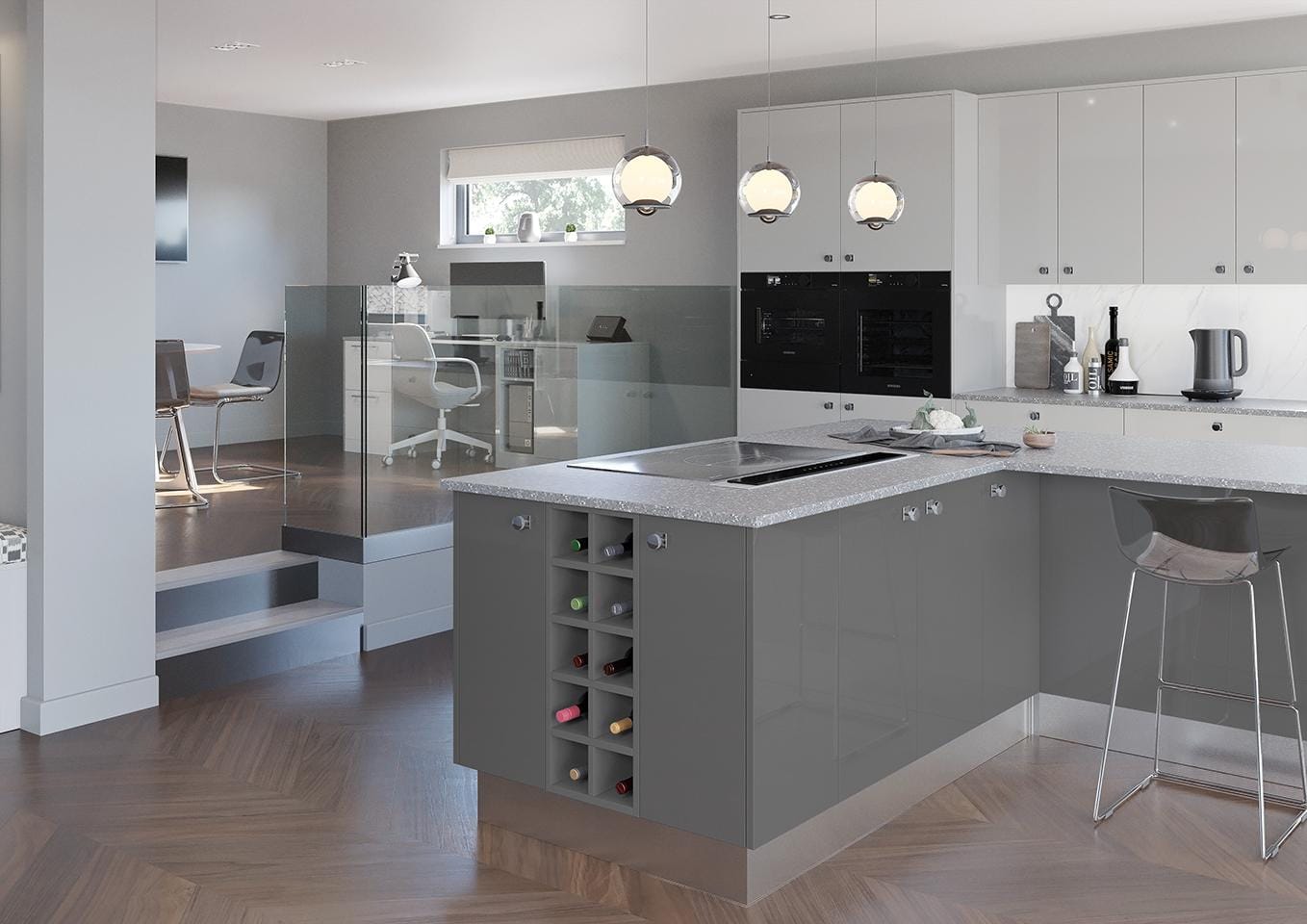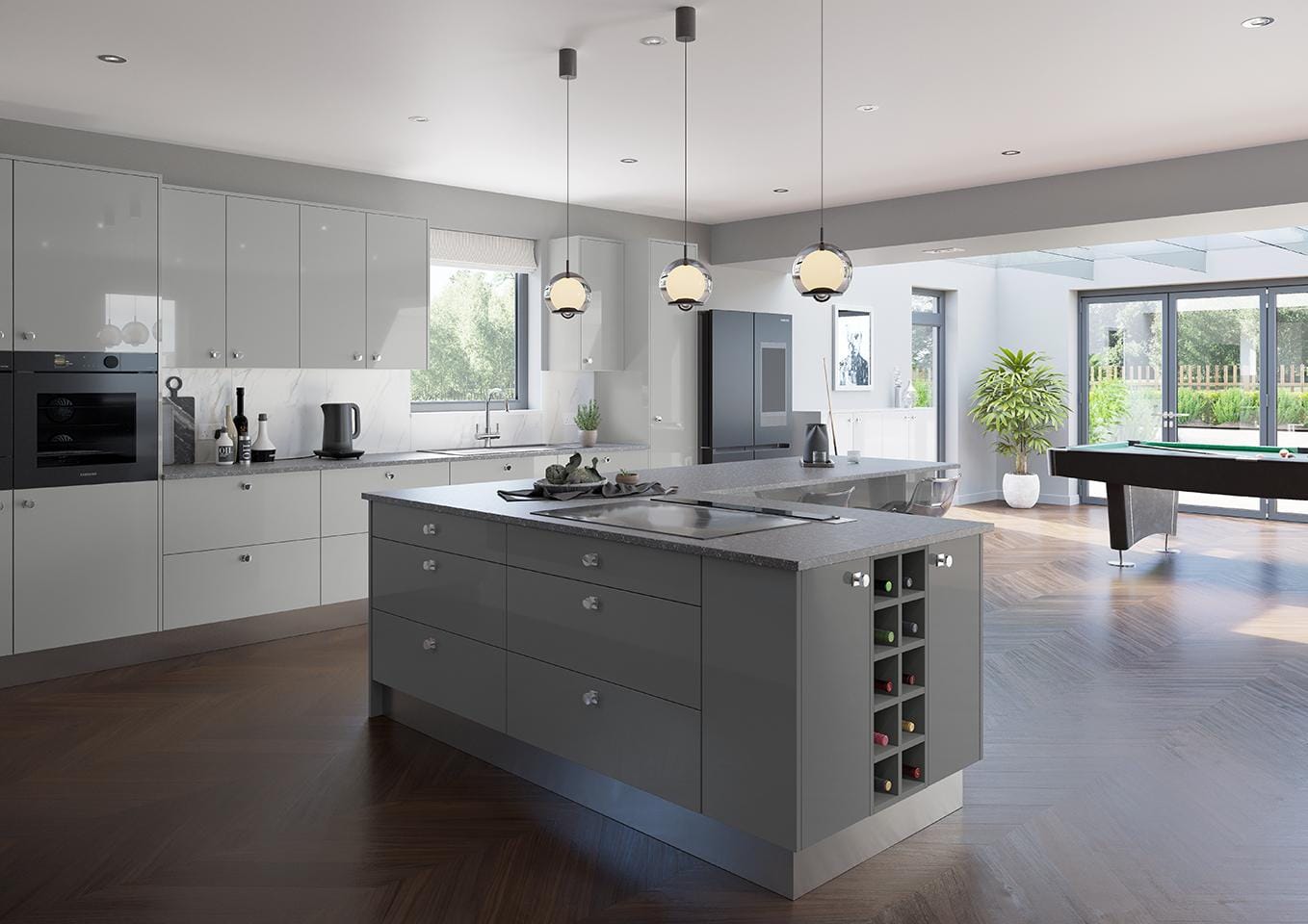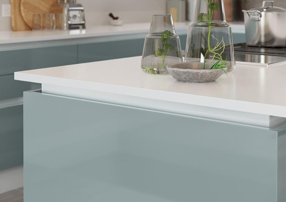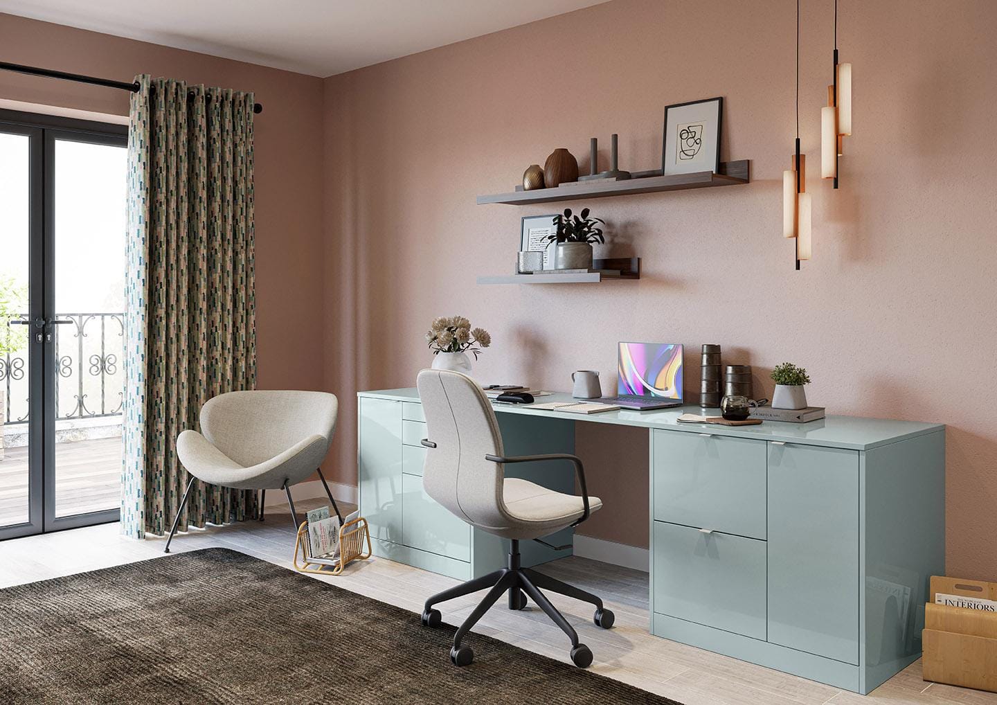 The range is available handle-less, tip-on handle-less or with a choice of handles. Furore may be paired with any of the colours in the Colour Fusions collection. Also available in Bedrooms and Living furniture.