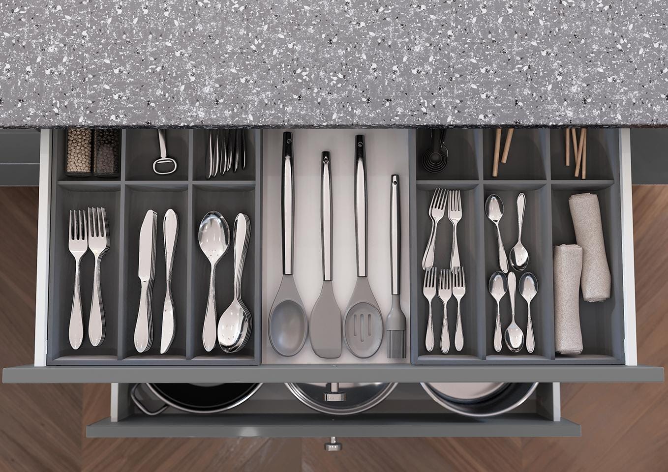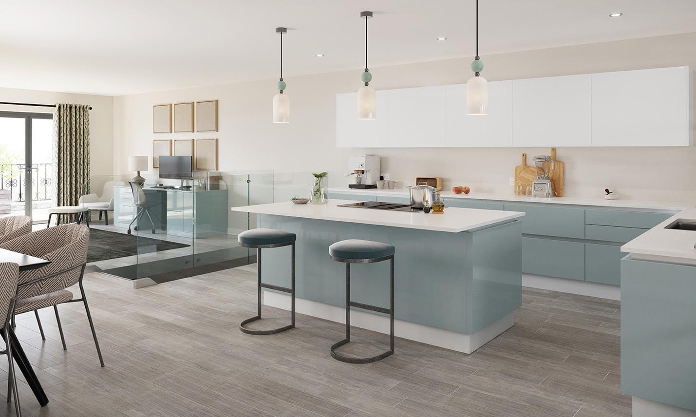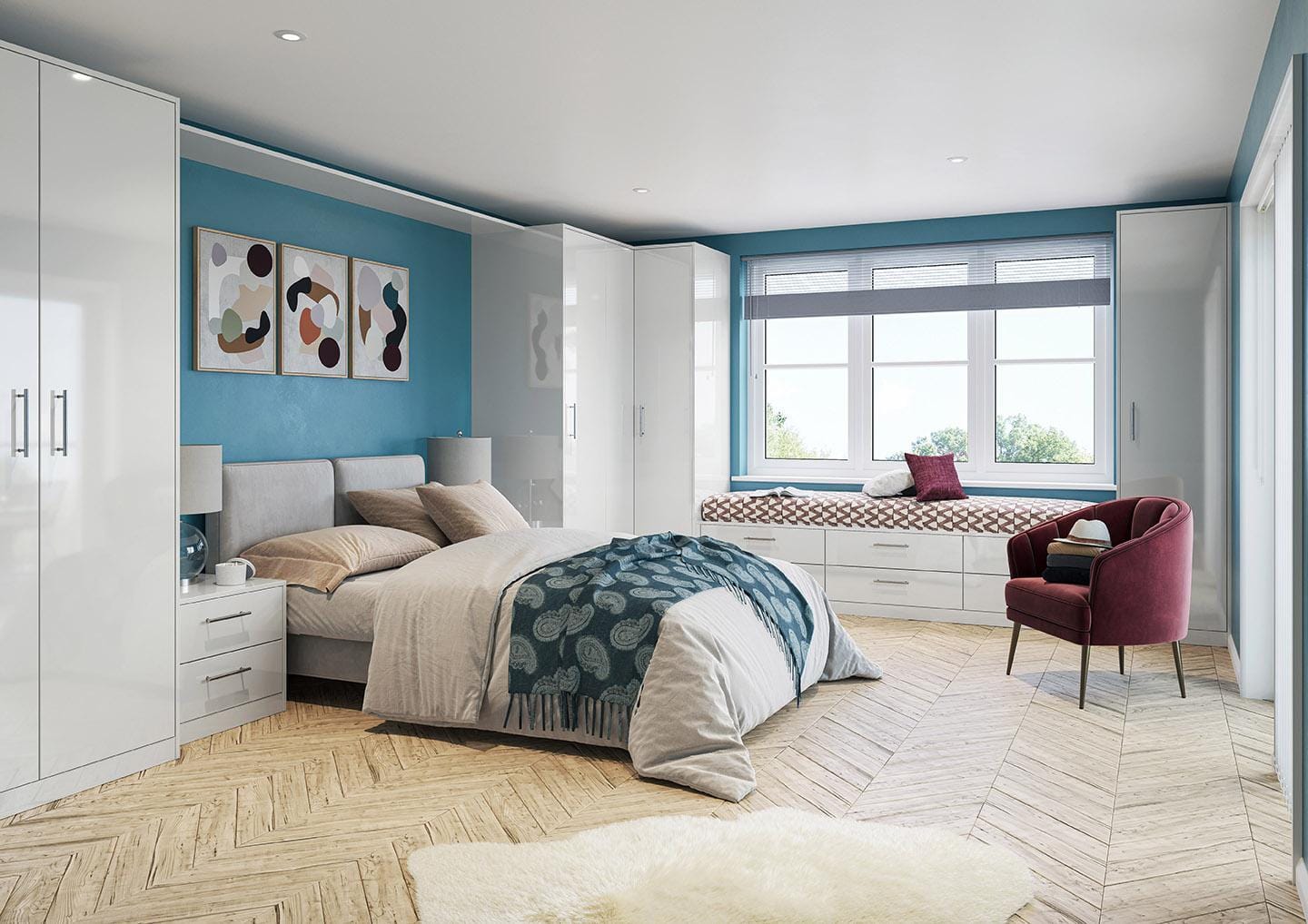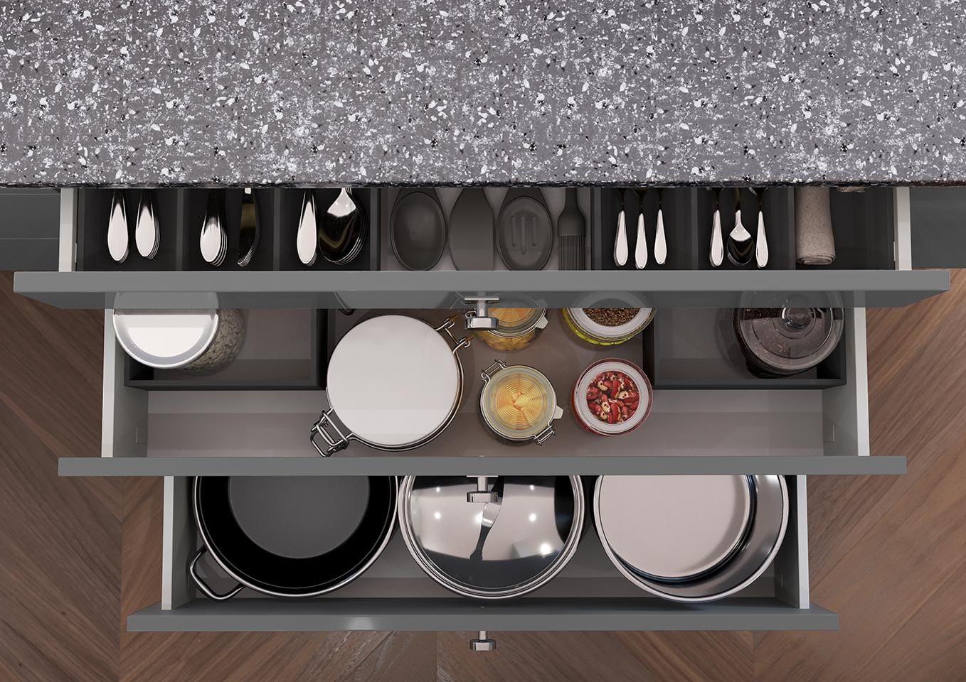The range is available handle-less, tip-on handle-less or with a choice of handles. Furore may be paired with any of the colours in the Colour Fusions collection. Also available in Bedrooms and Living furniture.