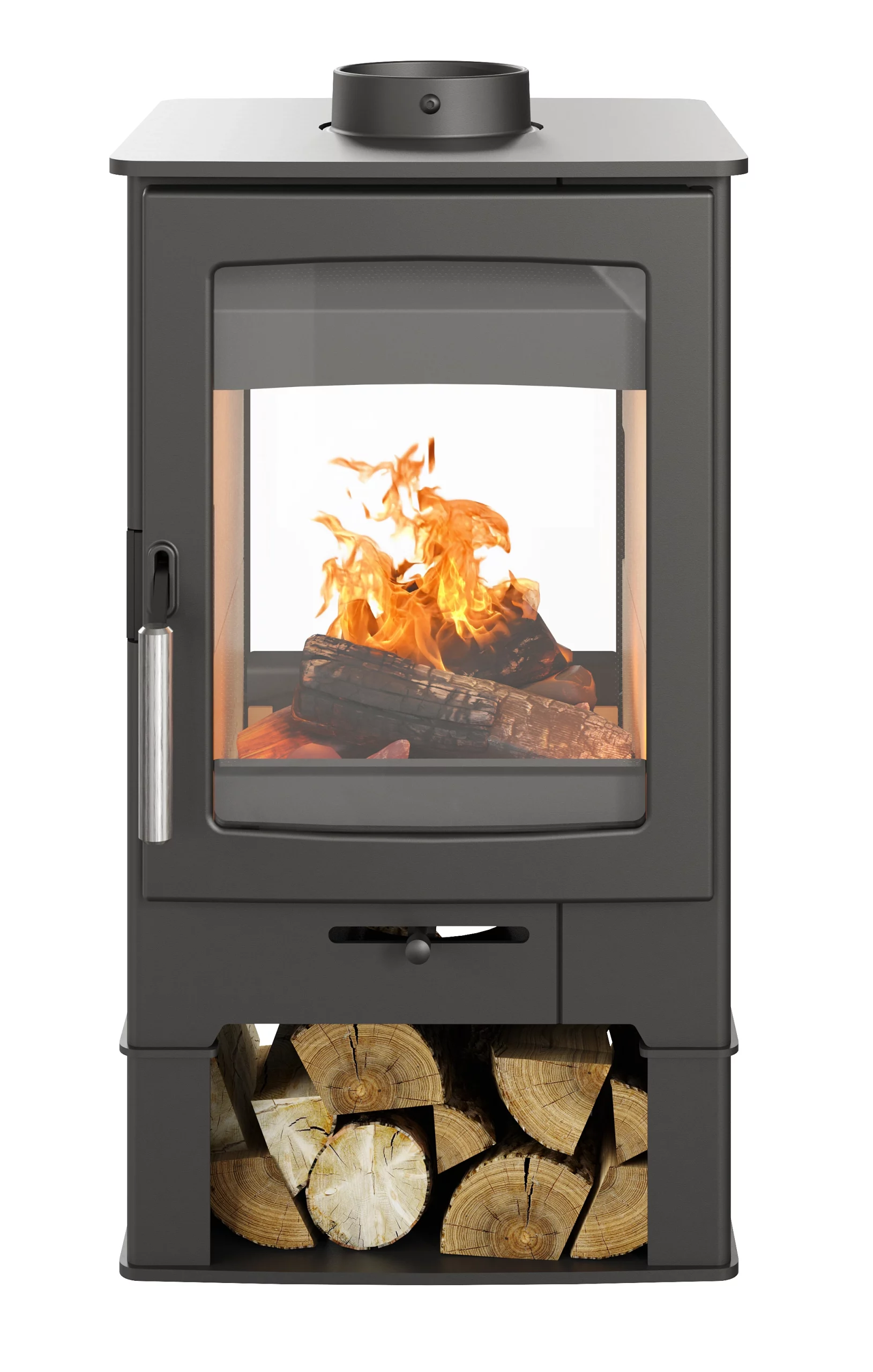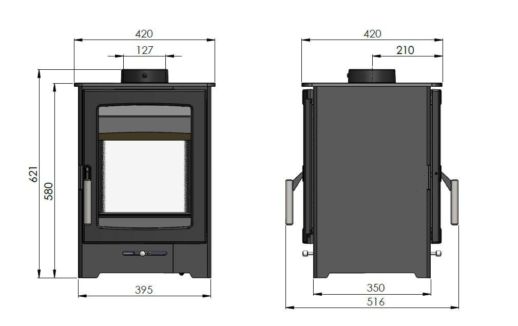 Capable of delivering a heat output between 4 and 7kW, it efficiently heats two rooms. With DEFRA approval, it meets stringent environmental standards. The innovative airwash system maintains clear glass for uninterrupted flame viewing, while the straightforward 5-inch flue installation and compatibility with a 12mm hearth make it practical for various settings. Supported by a 10-year guarantee, the Parkray Aspect 4 Double Sided wood burner is built for lasting performance and aesthetic appeal.