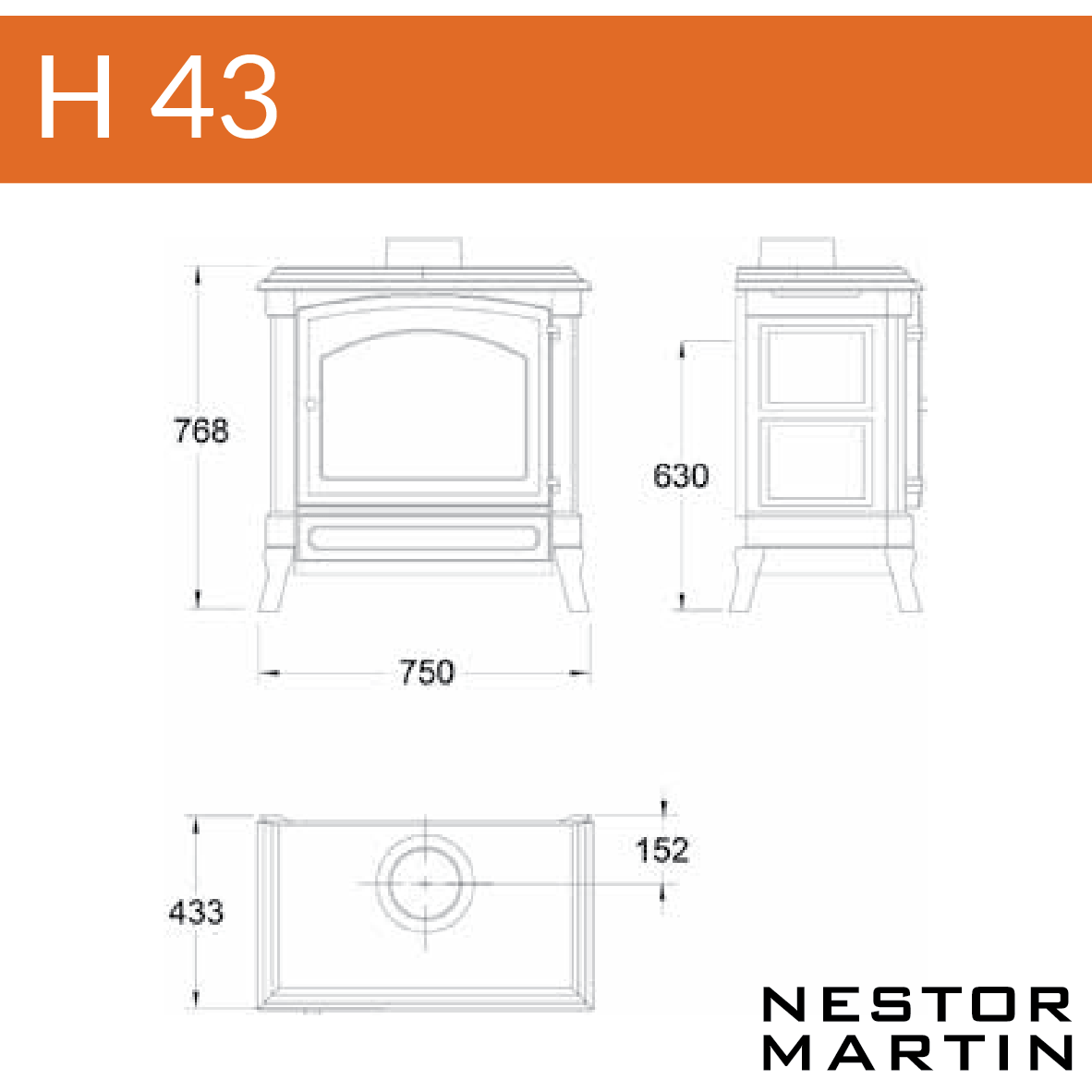 The Harmony H43 is a high-quality stove from Eurostove, combining elegant design with exceptional performance. With a nominal heat output of 10.5kW, and an impressive efficiency rating of 80%. The stove has a height of 770mm, width of 750mm, depth of 450mm, weighs 188kg. The firebox accommodates logs up to 500mm in length.