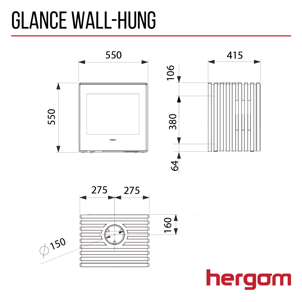 The Hergom Glance Wall Hung Ecodesign Ready is a high-quality stove from Eurostove, combining elegant design with exceptional performance. With a nominal heat output of 7.5kW, and an impressive efficiency rating of 80%, this stove achieves an A+ energy rating. The stove has a height of >550mm, width of 550mm, depth of 415mm, weighs 150kg. The stove is Ecodesign Ready, meeting the European-wide programme to lower emissions that came into force in the UK in 2022. The firebox accommodates logs up to 300mm in length.