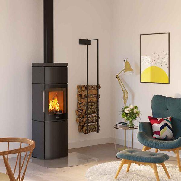 HWAM 4560m (modern door) – Available in grey or black steel