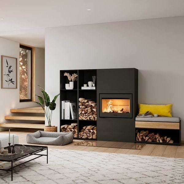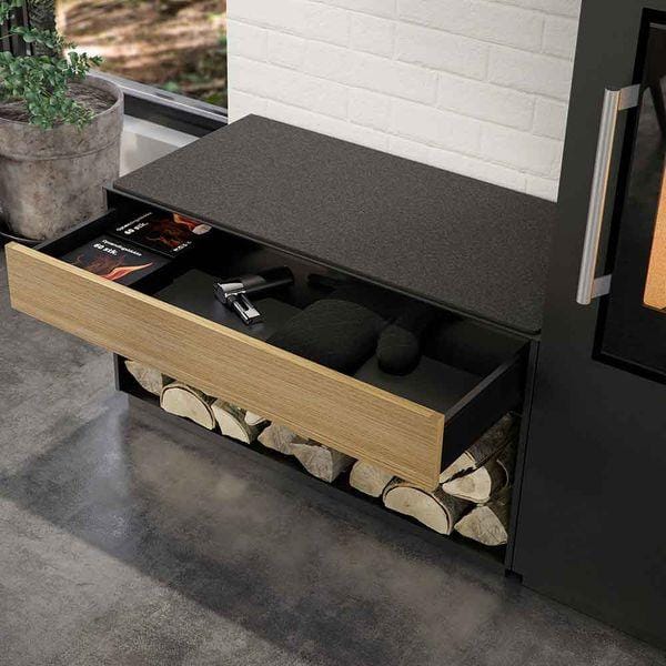 The wood burning stove is available in several heights and if you want to increase the height even more, you can purchase additional modules.