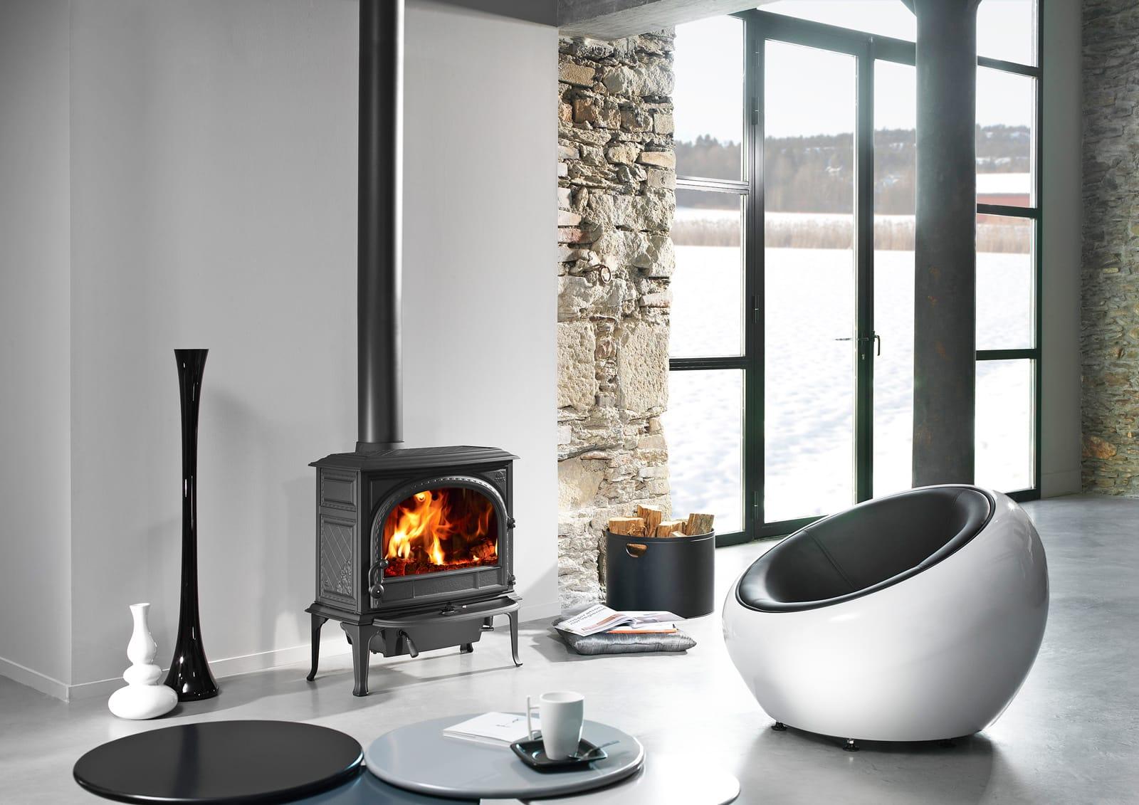 Jøtul F 400 Eco SE is one of the largest cast iron wood stoves on the Norwegian market, with room for logs of up to 50 cm. This model has a large external ash removal solution and ash lip.