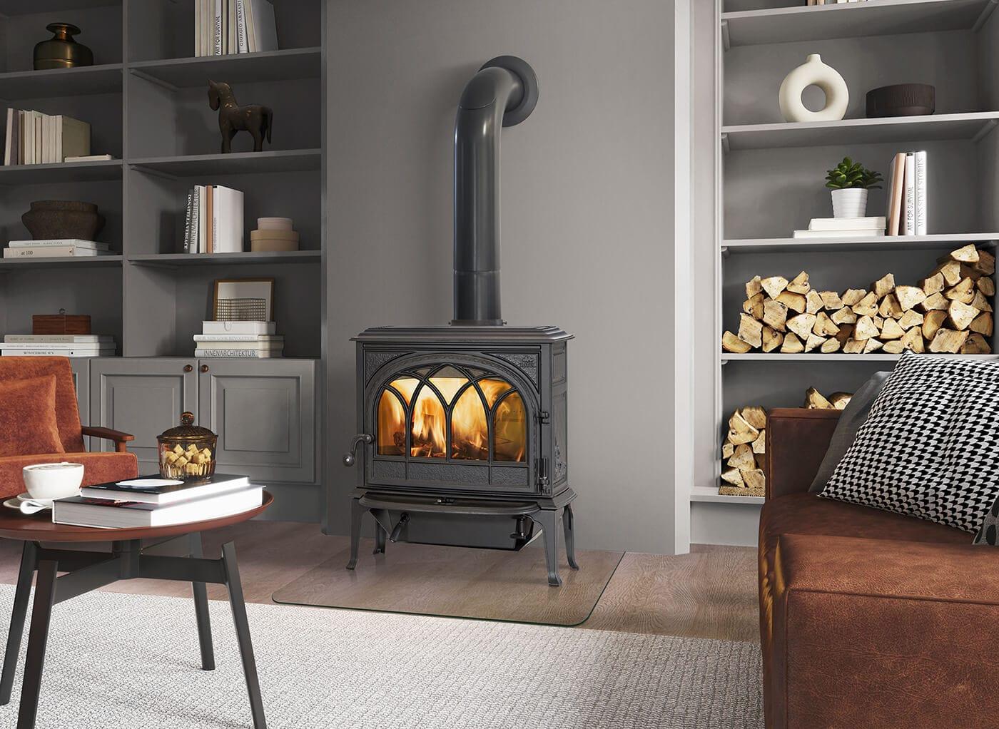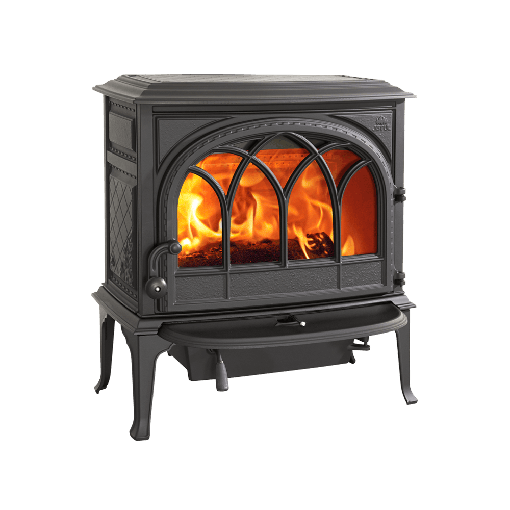 Jøtul F 400 Eco is one of the largest cast iron wood stoves on the Norwegian market, with room for logs of up to 50 cm. This model has a large external ash removal solution and ash lip.