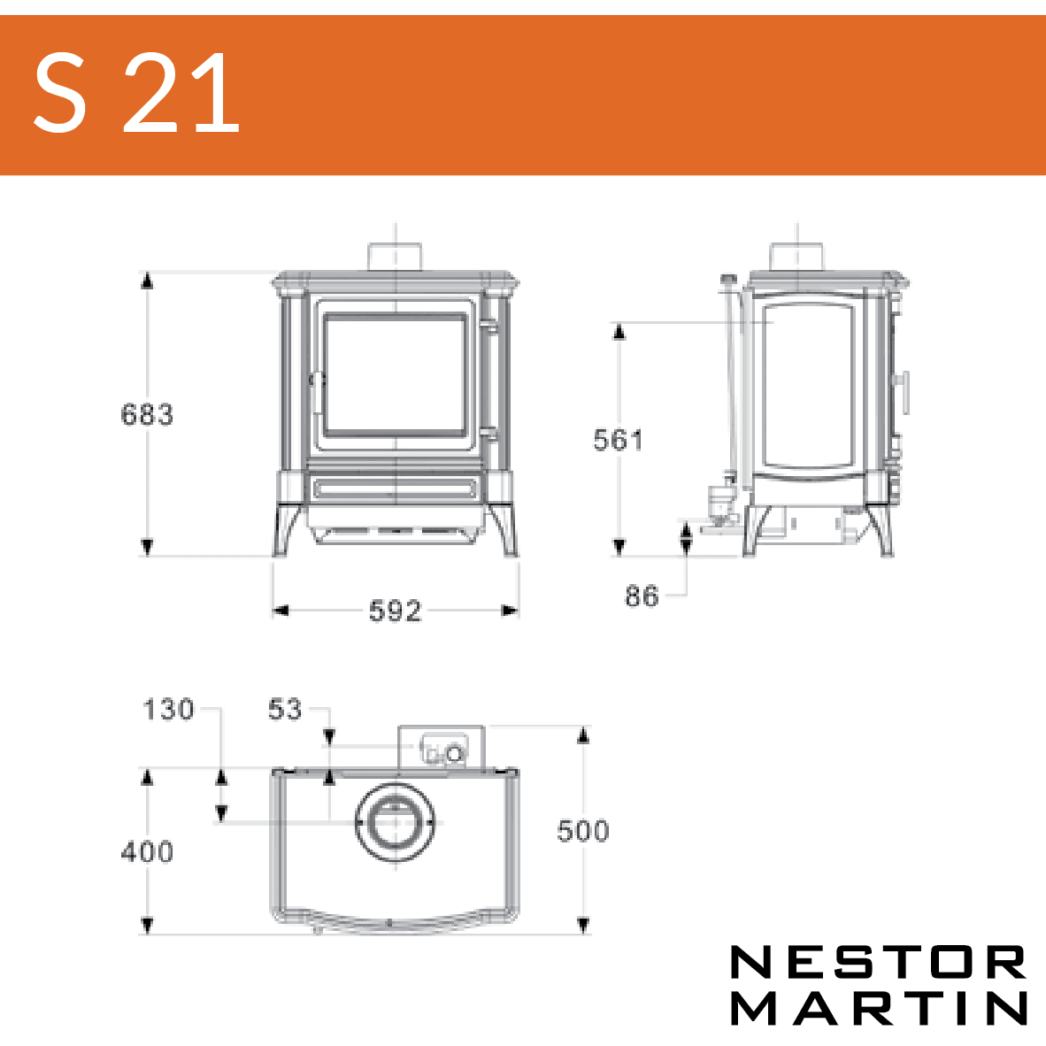 The Stanford S21 Oil Stove is a high-quality stove from Eurostove, combining elegant design with exceptional performance. With a nominal heat output of 6kW, and an impressive efficiency rating of 79%. The stove has a height of 683mm, width of 592mm, depth of 500mm, weighs 100kg.