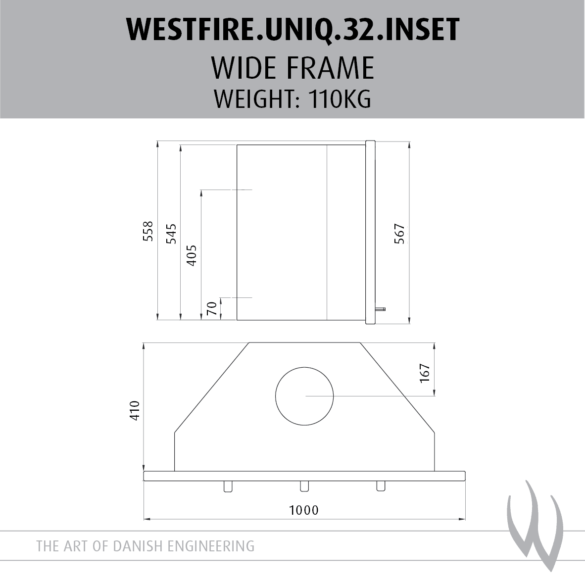 The Uniq 32 1000Mm Wf is a high-quality stove from Eurostove, combining elegant design with exceptional performance. With a nominal heat output of 7.0kW, and an impressive efficiency rating of 82%, this stove achieves an A+ energy rating. The stove has a height of 545mm, width of 810mm, depth of Narrow Frame: 430mm / Wide Frame: 410mm, weighs 110kg. The stove is Ecodesign Ready, meeting the European-wide programme to lower emissions that came into force in the UK in 2022. The firebox accommodates logs up to 450mm in length. The stove comes in a stylish anthracite finish.