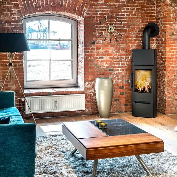 with heat storage stones & lower door showcases the pinnacle of Danish stove engineering, combining cutting-edge technology with elegant Scandinavian design. This sophisticated wood burning stove features HWAM’s advanced combustion system, delivering outstanding efficiency while maintaining minimal emissions. Built with premium materials and finished to exacting standards, this stove provides both exceptional heating performance and stunning visual appeal. The innovative design incorporates thoughtful details that enhance both functionality and aesthetics, making it a perfect centerpiece for contemporary living spaces. The advanced heat storage system maximizes thermal efficiency, storing heat during operation and releasing it gradually for extended warmth even after the fire has died down. The convenient lower door provides easy access for maintenance and ash removal, ensuring simple upkeep while maintaining the stove’s sleek profile.